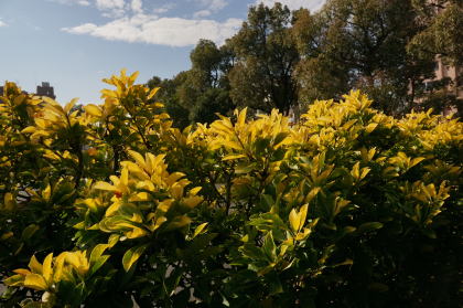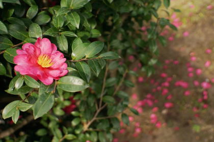 | 15:13 県庁北側駐車場の屋上の山茶花。 この日、別大マラソンを見た後、鴨池新町、真砂本町を4qほど歩いた |