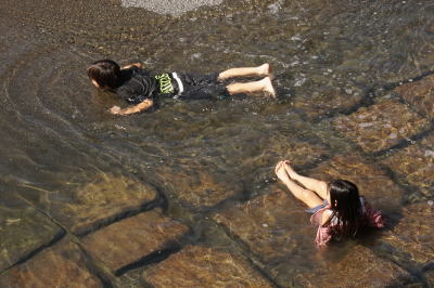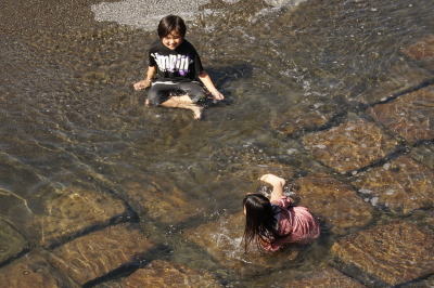 | 2/23 14:03 陽気に誘われて石橋公園に来てビックリ! いかに暖かかったとはいえ、子どもたちならではだ |