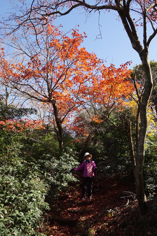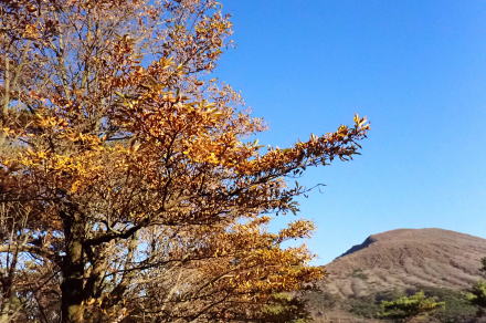 | 11/14(金)、また紅葉狩りに出かけた。前週11/8(土)の霧島えびの高原・六観音御池に続いてだ。 じつは、11/8、六観音御池の紅葉をたのしんだ後、白鳥山北展望台に上り、山頂を経て下山し始めた時、 白鳥山に上ってくるIGさん一行と出会い、「えびの岳の紅葉がとってもきれいだった」と教えられたのだ。 11/13(木)ジムでも山好きのYさんから、「11/10(月)晴れてはいなかったけど、えびの岳の紅葉が素晴らしかった」と聞いた。 そこでこの日だ。晴れ、降水確率0%の予報。急きょ、行こうとなった。 えびの岳は霧島の山々のなかで標高差の少ない、最も簡単な歩きやすい山だ。 何度も足を運んでいるが、えびの岳の紅葉がこんなにもきれいとは知らなかった。 ただ一度だけ紅葉のときにも行っていて、ウリハダカエデのところで写真を撮った覚えがあった。 HPを見直してみると、事実、「2020年写真あれこれ」のなかで、「11/10、えびの岳の紅葉散策」として2枚、紹介している。 パソコンファイルのその日の写真をみるとピークは過ぎているものの、きれいな写真が他にもたくさんあるではないか。 人間の記憶はいい加減だ。 見たのは初めてではなかったが、今回初めて「えびの岳の紅葉はとてもきれい!」と意識したのだ。 このページの一番最後に、霧島の山々の紅葉時の様子がわかる、私が作ったページのリンクをたくさん貼っている。 県道わきの登山口から入ってものの十数分で、きれいな紅葉と対面できるえびの岳はアクセス面からもとても魅力的だ。 我々にとってこの新しい紅葉の名所には、この先毎年訪ねることになると思う。 もともと、えびの岳は登山道のほとんどが土の上で気持ちよく歩くことができ、好きだった。 岩ゴロゴロや固い登山道が多い霧島の山にあって、高齢者に特別に優しい山と言ってもよいかもしれない。 今回改めてなが〜く、大切にお付き合いしていきたい山と思った次第だ。 では、きれいな紅葉の写真をご覧ください。 11/20 たっちゃん |