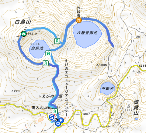 | 例年、白鳥山に登ってから、六観音御池に向かうが、この日は六観音御池に直行した。 YAMAPの記録。距離6.4q。±344m |