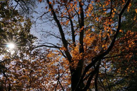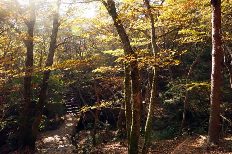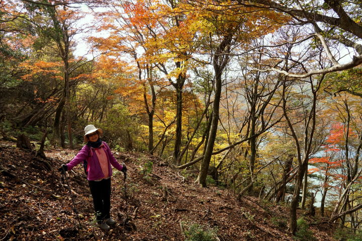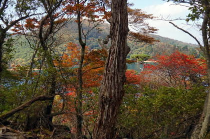 | 11:26 六観音御池展望所着。 逆光で紅葉はきれいに見られない |