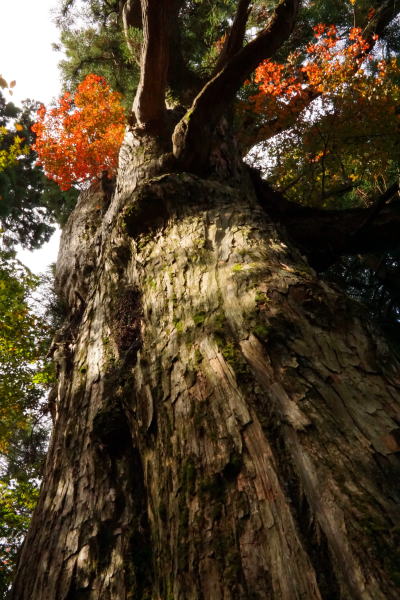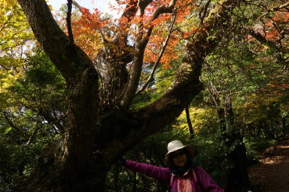 | 11:19 巨大杉に着床した紅葉の木(ドウダンツツジ) |